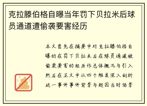 本文将详细探讨安东尼对于被列入“炸弹小队”一事的看法,并深入分析他在接受俱乐部安排时的心态。在这篇文章中,我们将从多个角度分析安东尼的心理反应,包括他对于不被尊重的感受、对于俱乐部安排的理解以及他如何平衡自己的情感与职业态度。通过探讨这些方面,我们能够更好地理解一名职业球员在面对挑战时如何调整自己的...